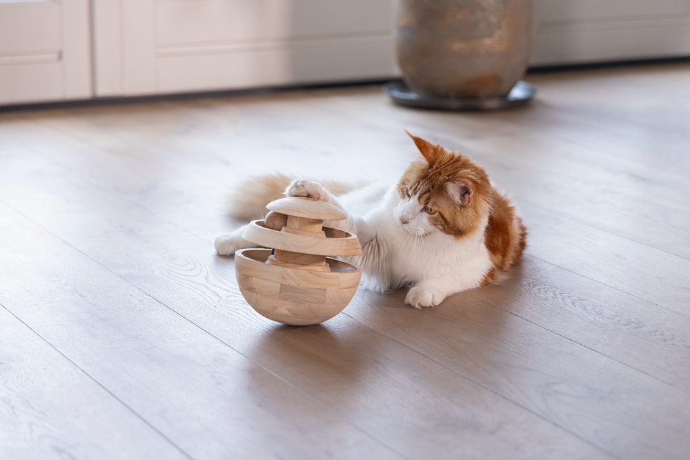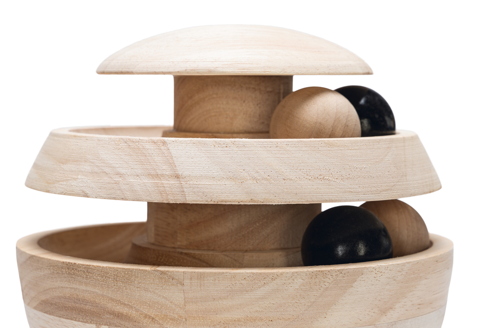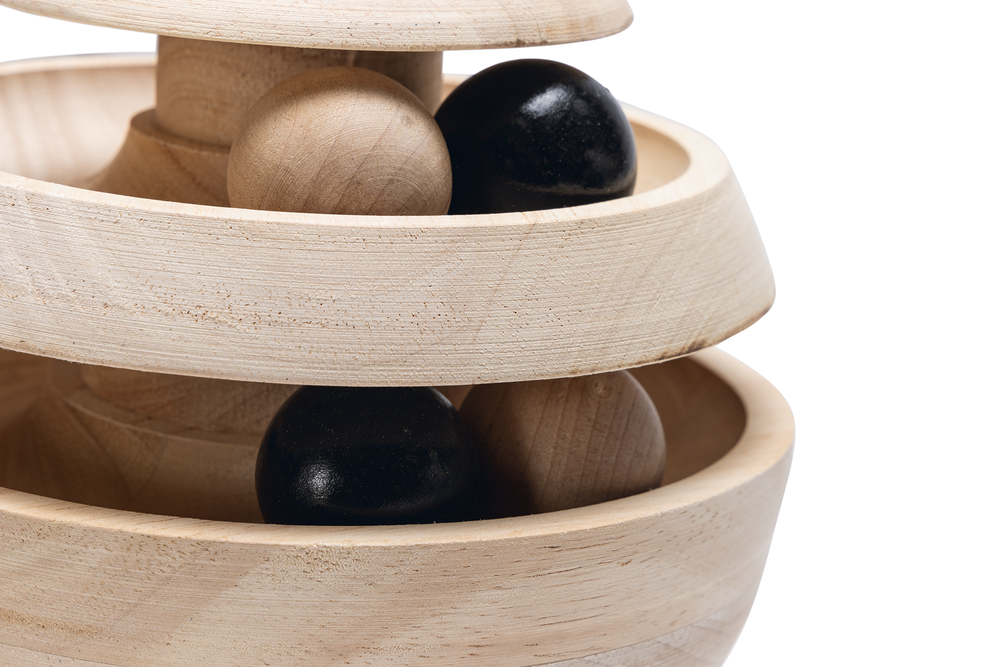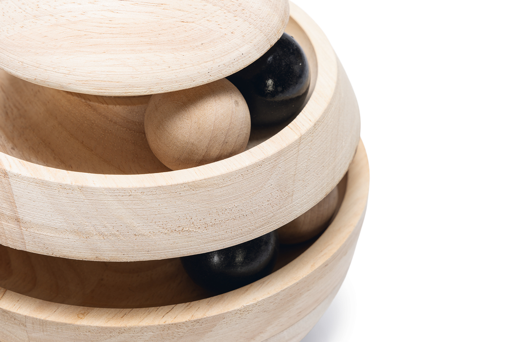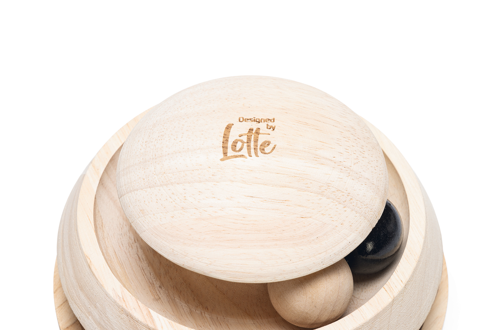 Laske oma kassil stiilselt mängida kauni Lotte Neya disainitud kassimänguasjaga. Kummipuust valmistatud mänguasjasl on loomulik välimus. Mänguasjaga mängimise teeb lõbusaks 4 puidust palli, mis on peidetud selle mänguasja piludesse. Kui teie kass oma käppadega palle puudutab, lähevad need veerema.