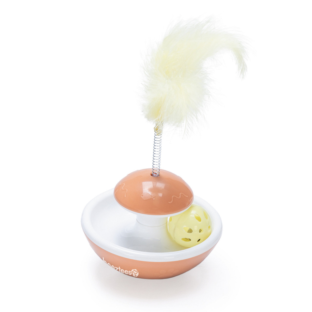 Beeztees mänguasi on kassipoegadele loodud interaktiivne vahend, mis pakub iseseisvat ja mitmekesist tegevust. Kumera põhjaga konstruktsioon paneb eseme liikumisel edasi-tagasi kõikuma, köites looma tähelepanu ning kutsudes mängima. Erinevad detailid, nagu kellukesega pöörlev pall ja sulgedega spiraal, pakuvad mitmekülgset stimulatsiooni.