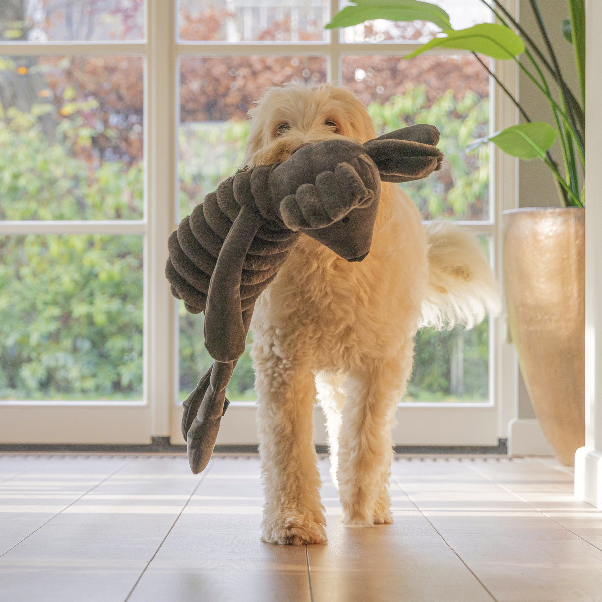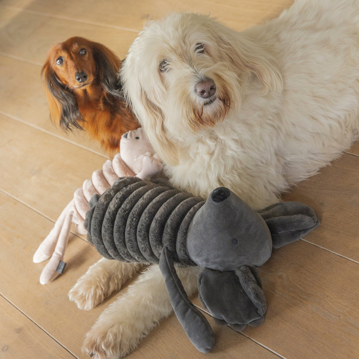 Designed by Lotte Reza XL on muljetavaldavas suuruses ja elegantse antratsiithalli tooniga mänguhiir, mis ühendab endas luksusliku disaini ja mängulusti. Mänguasi on valmistatud pehmest ja paksust triibulisest plüüsist, pakkudes lemmikloomale meeldivat tekstuuri nii kaisutamiseks kui ka mängimiseks. Tänu oma 68 cm pikkusele on see suurepärane kaaslane suurematele koertele või neile, kes armastavad uinakute ajal suurema kaisusõbra vastu toetuda.