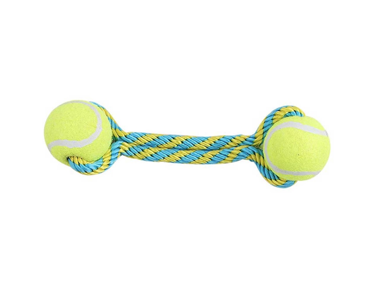 Nöörist hantel tennisepallidega. Mõõdud: 22cm