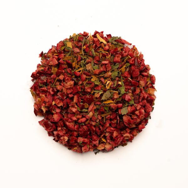 Kogus: 10 püramiidkotti (10 x 2,0g). Koostis: külmkuivatatud jõhvikad, kaneel 50%, mahe piparmünt (meie oma ürdiaiast).