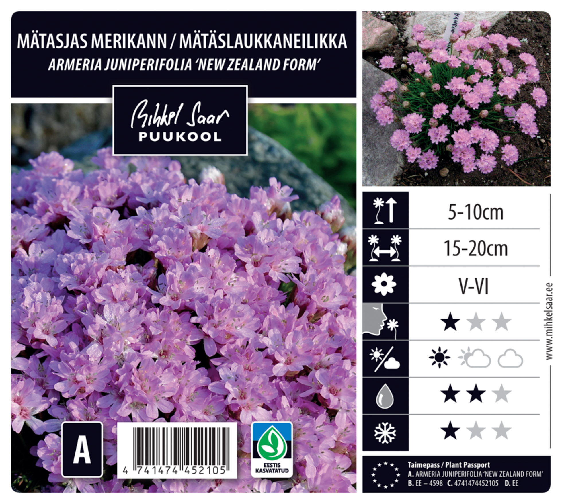 Mätasjas merikann ‘New Zealand Form’ on madal ja tihedalt puhmasjas püsik, mis moodustab korrapäraseid tumerohelisi lehepuhmaid. Kevadel ja varasuvel tõusevad lehtede kohale peened varred, mille tipus avanevad kompaktsed roosakaslillad õisikud. Õitsemine kestab pikalt ning kordub sageli ka hilissuvel. Sobib hästi kiviktaimlasse, peenrasse ääristaimeks või ka katusehaljastuses ja konteinerisse.