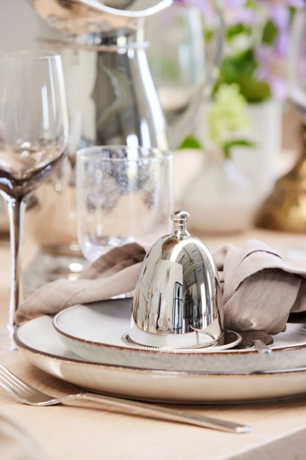 Ajatult stiilse disainiga hõbedane Sigrid munatops lisab igale toidulauale elegantsi. Messingist valmistatud klassikaline vorm loob peene ja maitsekalt viimistletud ilme, sobides suurepäraselt nii igapäevaseks kasutamiseks kui ka pidulikumateks hetkedeks.
