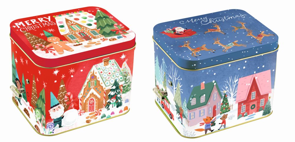 Üles keerates jõulumuusikat mängiva karbi sees on piimašokolaadist maiustused ja kummikommid.