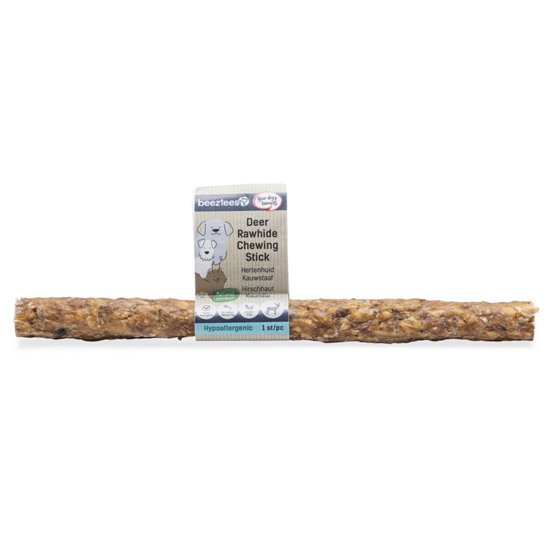 Närimispulk hirveliha 25 cm on 100% naturaalne ja hüpoallergeenne maius, mis pakub koerale maitsvat ja tervislikku närimisrõõmu. Pulk on valmistatud puhtast hirvenahast, mis on rikas valkude poolest ning aitab kaasa tugeva immuunsüsteemi, läikiva karvkatte ja tugevate lihaste säilitamisele. Närimine soodustab sülje tootmist, mis omakorda aitab loomulikul viisil vähendada hambakattu ja -kivi.
