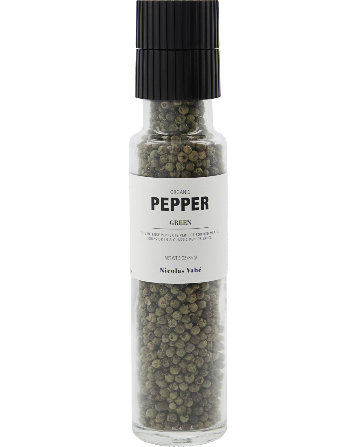 Nicolas Vahé mahe roheline pipar (85g) on õrnema maitsega alternatiiv mustale piprale. Kuivatatud rohelised pipraterad sobivad eriti hästi valgele kalale, röstitud liha kastmetesse ja roogadesse, kus soovitakse pehmemat, kuid siiski aromaatset vürtsikust. Jahvatamiseks kasutatav keraamiline veskimehhanism toob esile pipra eeterlikud õlid, rikastades toitude maitset ja lõhna.