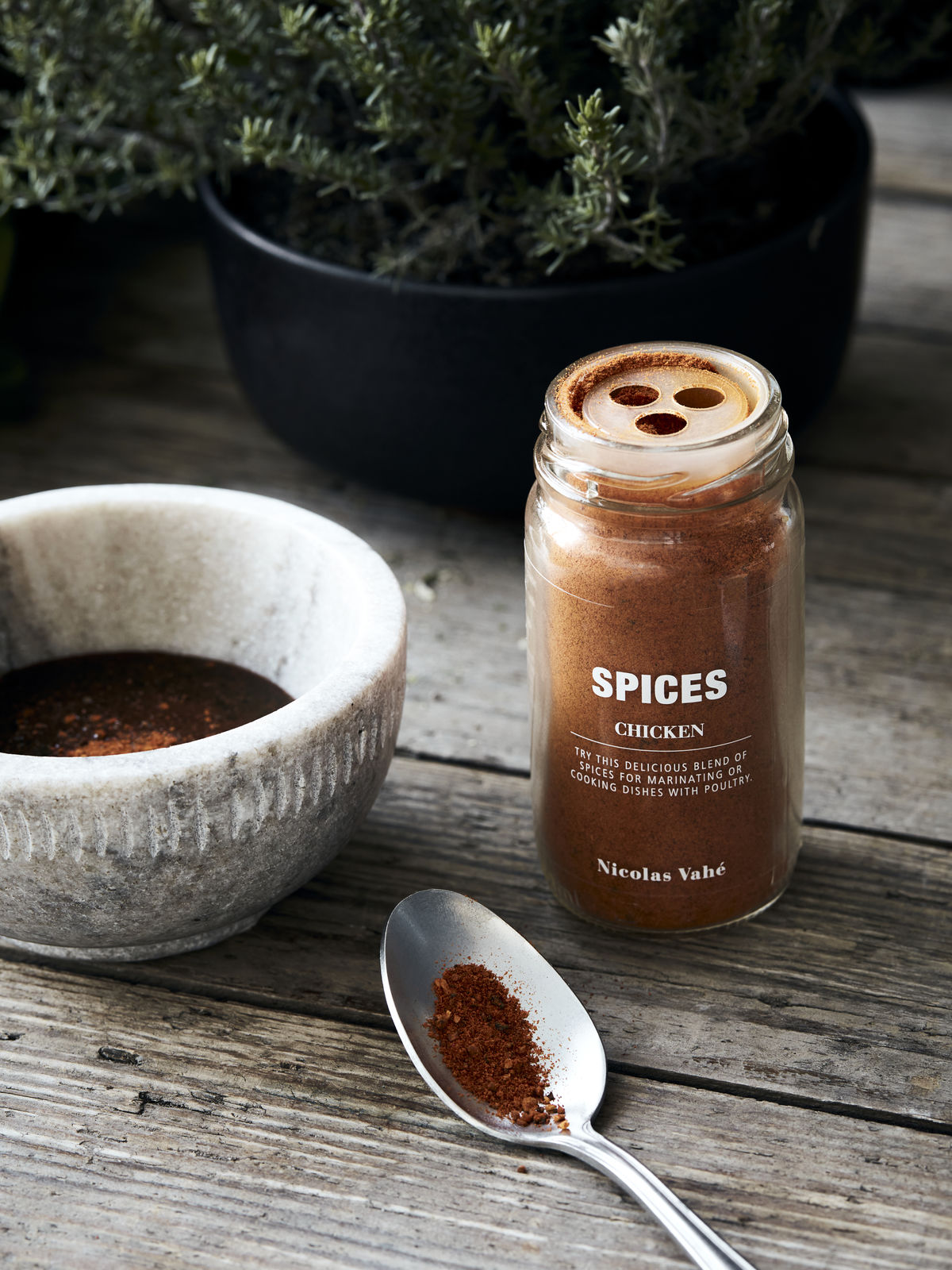 Nicolas Vahe kana maitseainesegu sisaldab magusat tšillit, küüslauku, kurkumit, ingverit ja köömneid.