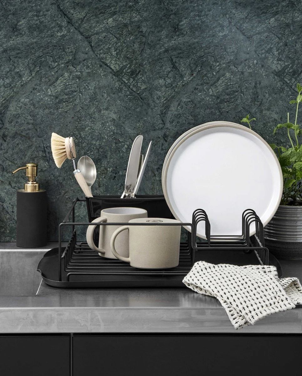 Elegantne plastik alusega nõudekuivatusrest. Muuda nõude pesemine ja kuivatamine stiilseks ning praktiliseks tegevuseks. Elegantne nõudekuivatusrest pakub mugavat hoiuruumi taldrikutele, klaasidele ja söögiriistadele, aidates hoida köögipinna korras ja kuivana. Vastupidavast metalltraadist valmistatud raam on kaetud pulbervärviga, mis tagab kestvuse ja modernse välimuse. Kaasas on ka plastikalus ja eraldi söögiriistade hoidja, mis teeb kasutamise veelgi mugavamaks.