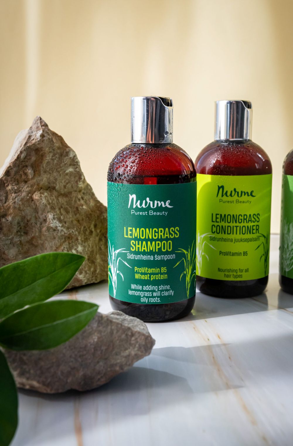 Nurme looduslikud šampoonid on valmistatud toorainetest, mis on tunnustatud ökoserifikaatidega. Nurme sidrunheina šampoon sisaldab ainult taimset päritolu koostisosi ning on õrn nii juustele kui ka keskkonnale. Toode on pakendatud taaskasutatavasse plastpudelisse.