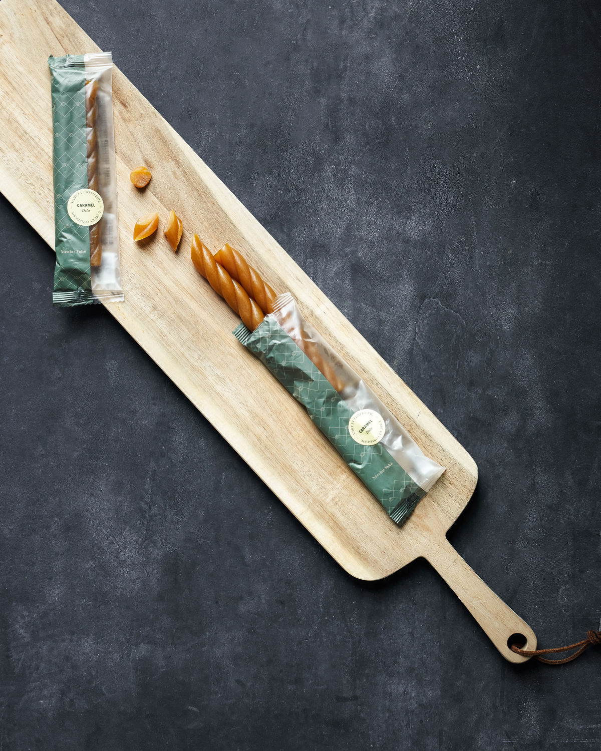 Koostis: glükoosisiirup, nisujahu, suhkur, vesi, invertsuhkrusiirup, sool, niiskusesäilitaja (E420), värvained (E150c, E100), säilitusaine (E202), glasuuriaine (E903).