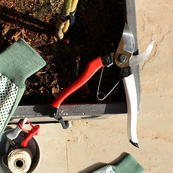 Käepide on punane ja ergonoomiline, tagades mugava haarde ja hea nähtavuse isegi kõrges rohus või tööriistakastis. Kääride V-kujuline vedru ja lihtne konstruktsioon tagavad sujuva ja ühtlase töö ka pikema kasutuse järel.