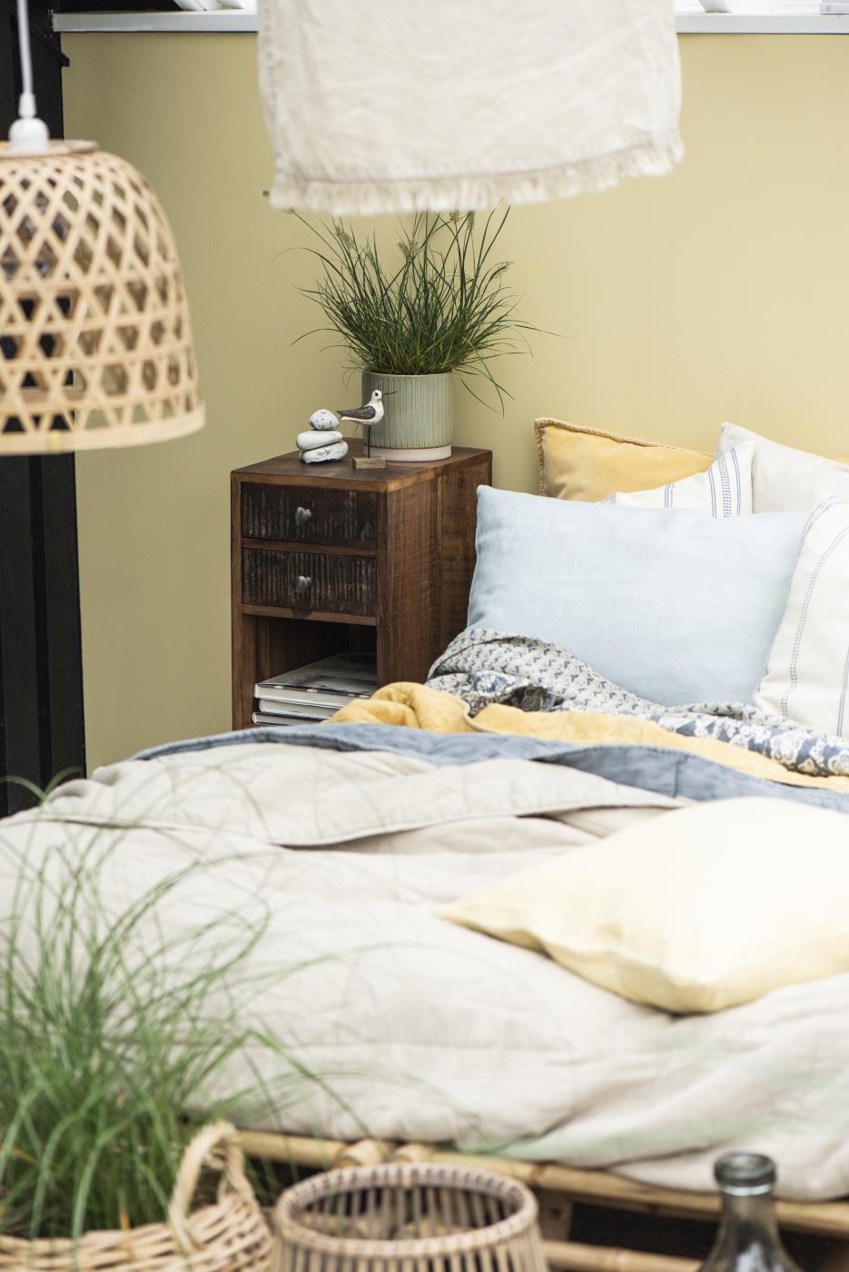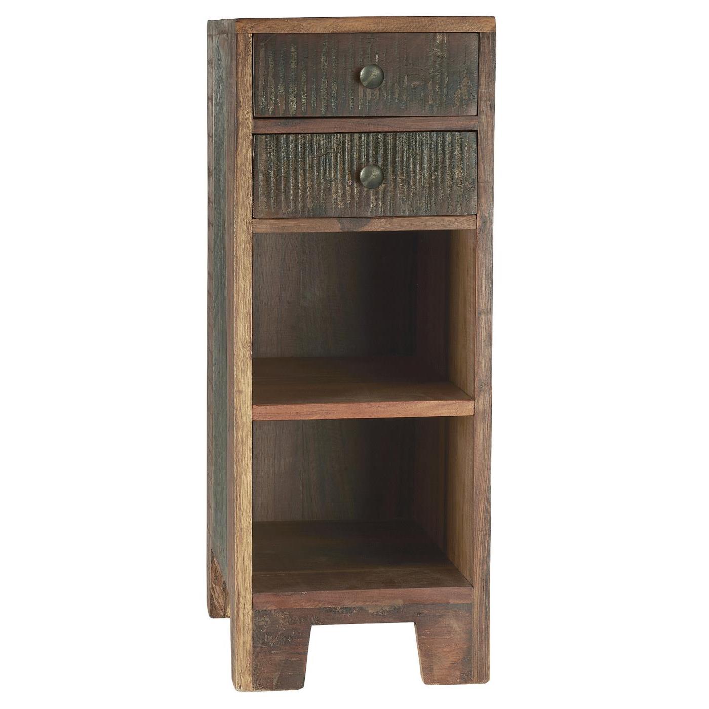 Öökapp/abilaud, millele annab iseloomu Indias valmistatud taaskasutatud lammutuspuu, paistab silma naturaalse tekstuuri ja kordumatu tooniga. Kaks sahtlit ja kaks avatud riiulit loovad praktilise kombinatsiooni, pakkudes nii hoiuruumi kui ka võimalust esemeid käepäraselt paigutada või välja panna. Naturaalne ja rustikaalne välimus sobib suurepäraselt nii magamistuppa kui ka elutuppa, lisades ruumile soojust ja omapära.