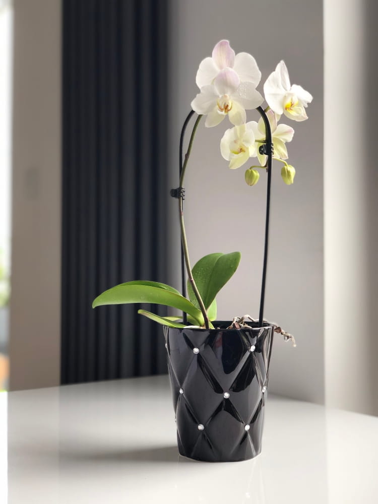 Valmistatud kvaliteetsest dolomiitkeraamilisest materjalist, mida kaunistavad sädeleva läikega strassikivid. Moon pott loob glamuurse ja eksklusiivselt elegantse õhkkonna ning sobib suurepäraselt elutuppa, magamistuppa või vannituppa. Kasuta seda orhideede kasvatamiseks, dekoratiivseks vaasiks või väikeste esemete hoiustamiseks.