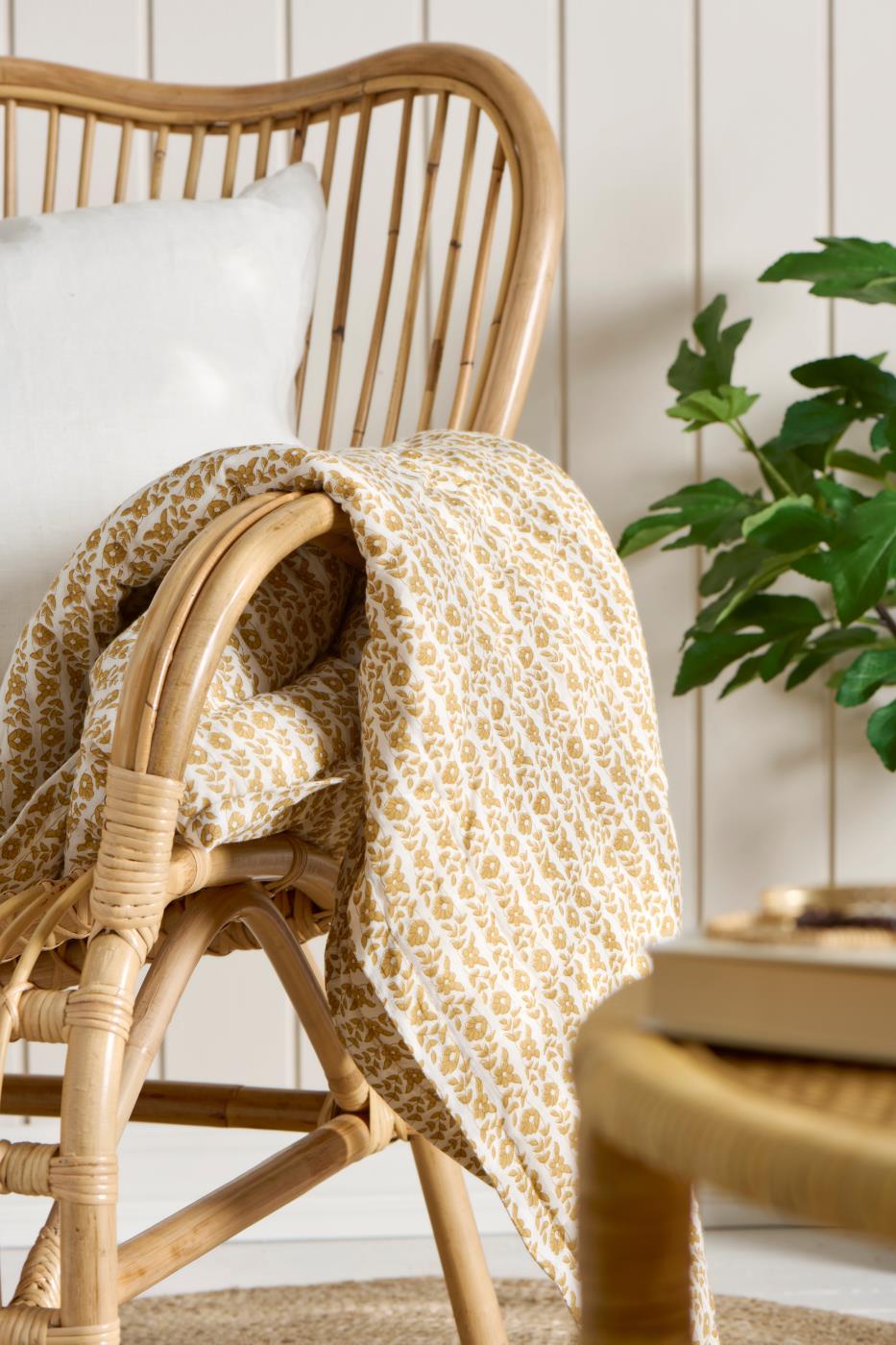 Kena päevatekk Celina kollaste lilledega. Pehme puuvillane materjal ja kaunis dekoratiivne muster loovad õdusa ja stiilse ilme. Sobib nii voodikatteks kui ka mõnusaks pleediks jahedatel õhtutel.