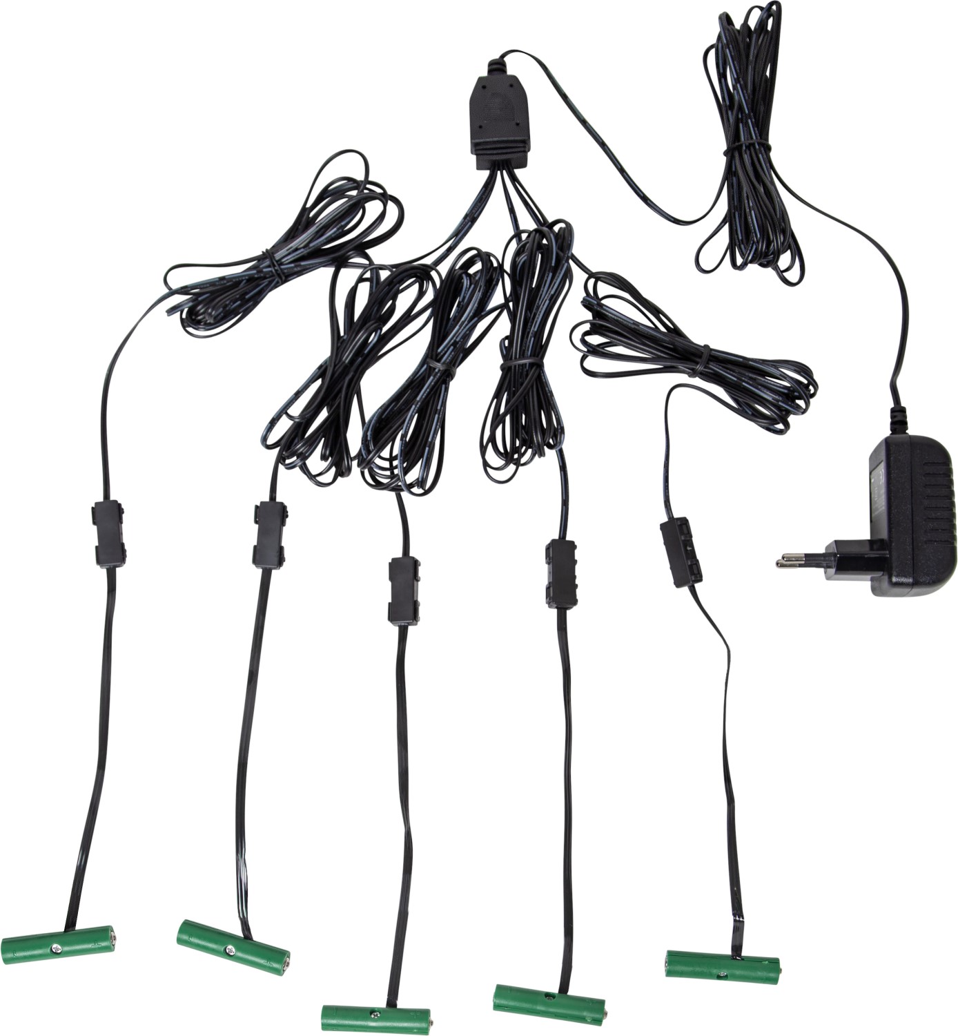Adapter võimaldab toita kuni 5 seadet korraga, asendades neis kasutatavad AAA akud pideva voolutoitega. Sobib hästi väikeste päikesepatareil töötavate aiavalgustite, minilaternate, dekoratiivsete aknakaunistuste ja väikeste õuekujude jaoks, mis hämaras muidu tööle ei hakkaks.