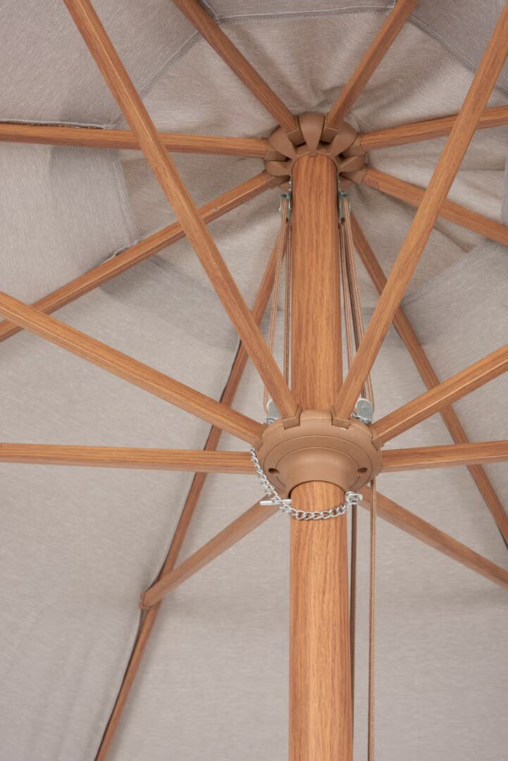 Elegantne ja vastupidav Frank päikesevari ühendab klassikalise disaini ja kaasaegse funktsionaalsuse. Beež varjukangas ning tiikpuu tooni detailid loovad loomuliku ja ajatult stiilse ilme, mis sobib suurepäraselt nii aeda kui terrassile.