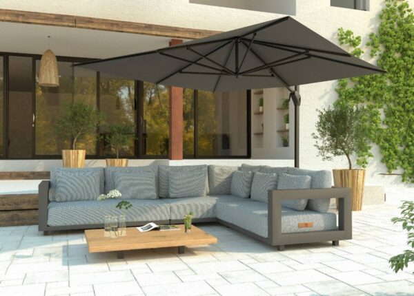 Materjal: alumiinium, graniit, solefiin Pikkus: 300cm Laius: 300cm Kõrgus: 250cm Kallutatav neljas suunas. UPF 50+, suurepärane kaitse (99+% kuni 97,5% UV-kindel)