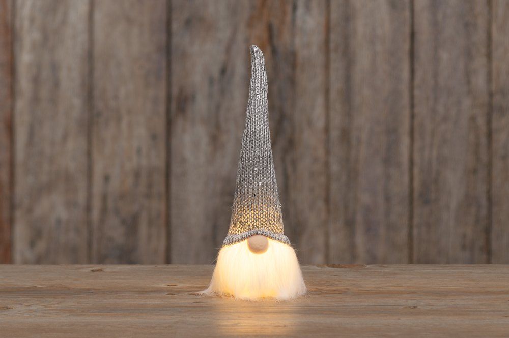 Päkapikk halli mütsiga LED 25cm, patareidega
