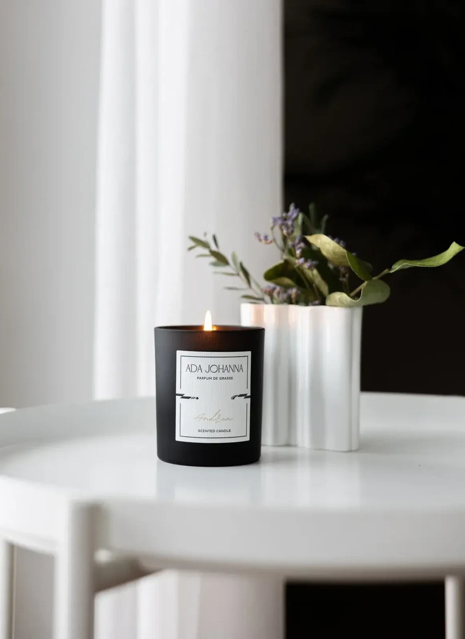 Andrea on värske ja särtsaka iseloomuga parfüümküünal, mis on valmistatud eriretsepti alusel soja- ja kookosvahast ning naturaalsetest parfüümidest. Lõhnas sulanduvad valge muskuse pehmus ja merelise karguse värskus, luues elava ja puhta atmosfääri. Küünal on stiilses musta kaanega klaasanumas ning kaunis karbis.