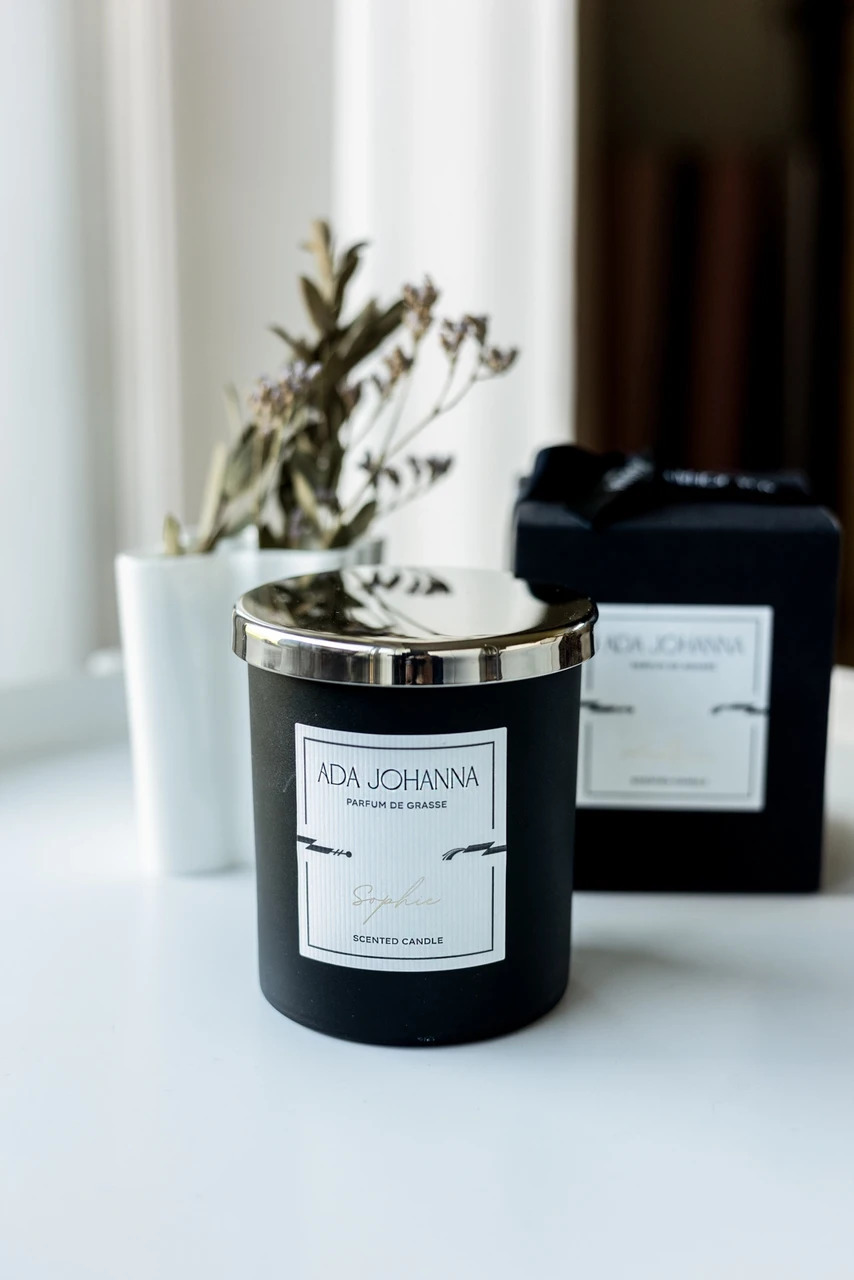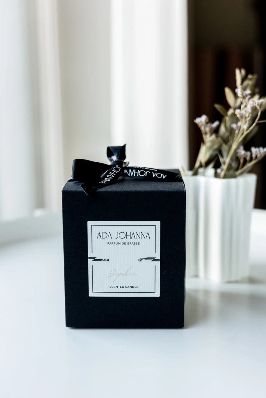 Sophie on sumedalt vürtsika iseloomuga parfüümküünal, valmistatud eriretsepti alusel soja- ja kookosvahast ning naturaalsetest parfüümidest. Selle lõhnas põimuvad patšuli sügavus ja pojengi lillelisus, luues rahuliku ja sensuaalse meeleolu. Küünal on elegantses musta kaanega klaasanumas ja pakendatud kaunisse karpi.