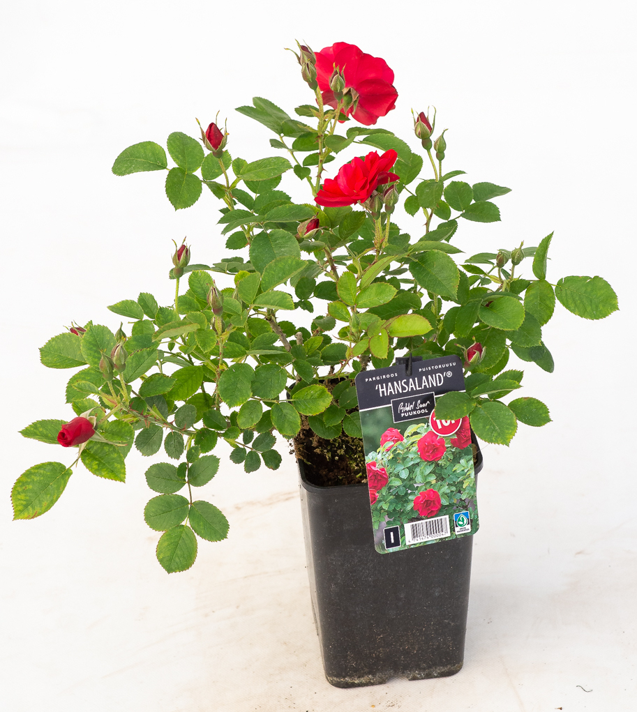 Pargiroos ‘Hansaland’ on üks populaarsemaid pargiroosisorte, tuntud oma vastupidavuse ja hea külmakindluse poolest. Erkpunased pooltäidisõied ilmuvad suurte kobaratena kogu suve jooksul, pakkudes silmapaistvat ilus. Õied on lihtsa kujuga, hea vihmakindlusega ja püsivad kaua dekoratiivsed. Tugeva ja tiheda kasvuga põõsas sobib kasutamiseks soolotaimena, gruppidena, masshaljastuses või vabakujulise hekina.