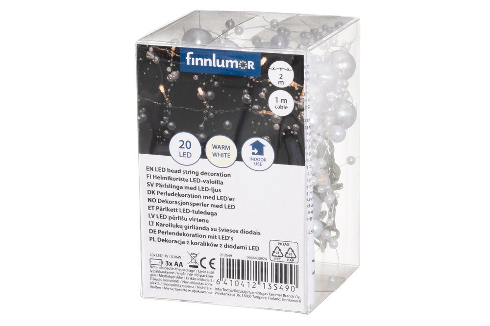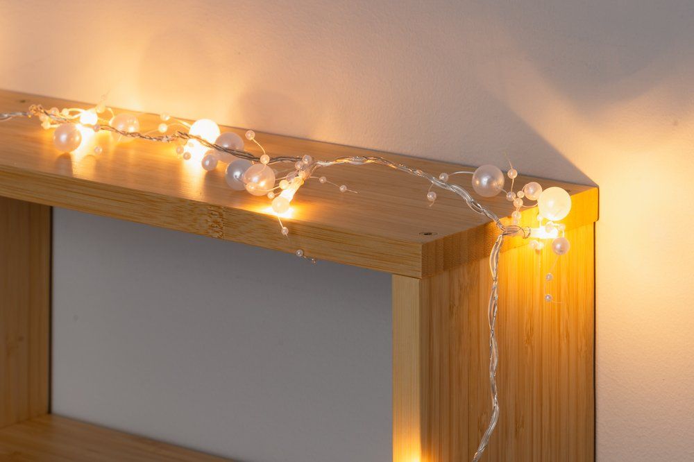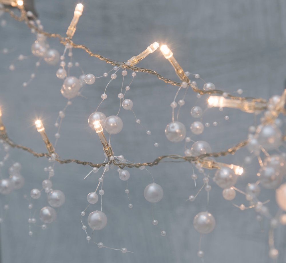 Kaunite valgete pärlitega kaunistatud valguskett, mis loob sooja ja piduliku meeleolu. Ideaalne vanikute, lauaseadete või muude dekoratsioonide täiustamiseks. 20 sooja valge tooniga LED-lampi annavad ruumile õrna sära. Juhtmevaba lahendus, mis töötab 3 × AA patareiga (ei kuulu komplekti).
