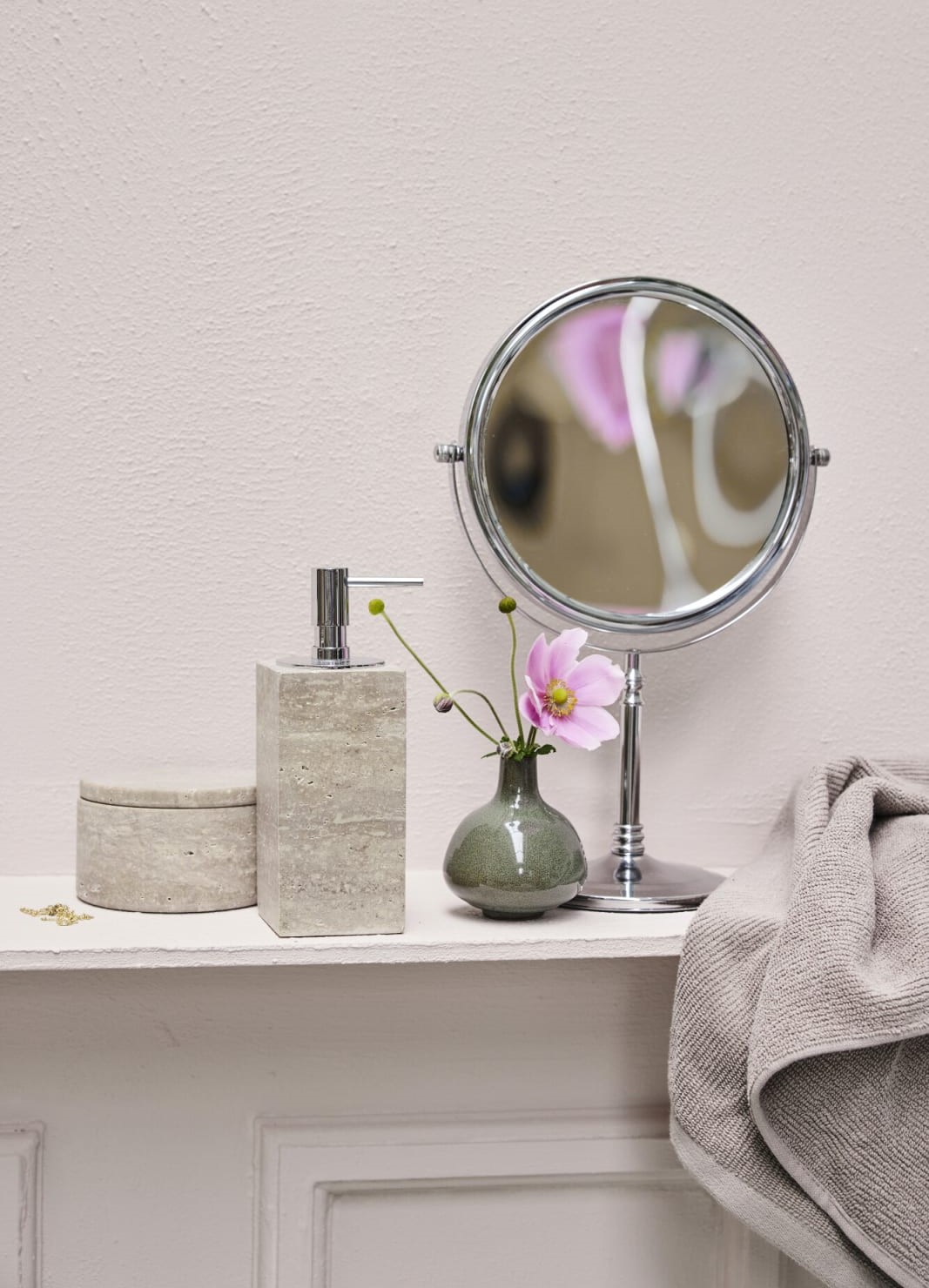 Liva sarja kaunis kosmeetikapeegel jalal lisab vannituppa nii elegantsi kui ka praktilisust. Hõbedane peegel on valmistatud vastupidavast tsingisulamist ning kaetud stiilse kroomviimistlusega.