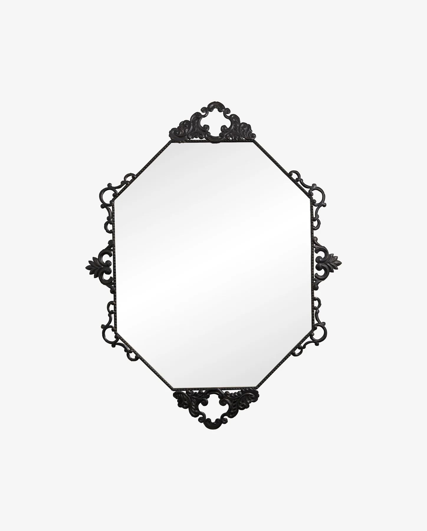 Kaunis peegel dekoratiivse musta raamiga, mille klaasil on faasitud serv. Sobib elegantseks aktsendiks esikusse, vannituppa või magamistuppa.