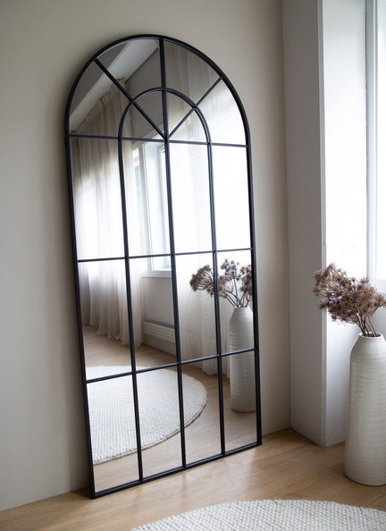 Suuremõõtmeline musta raamiga peegel Cape (90×200 cm) avardab visuaalselt ruumi ja suurendab valguse levikut. Akent meenutav jaotatud pind annab seinale selge struktuuri ning eristuva ilme. Metallraam tagab konstruktsiooni stabiilsuse ja vastupidavuse. Peeglit saab kinnitada seinale või kasutada põrandale toetatuna.
