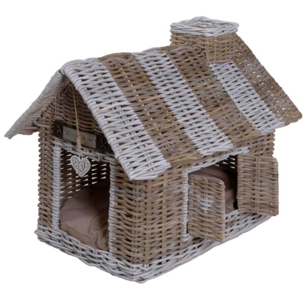 Värv: beež, pruun, valge Mõõtmed: 42x 62x 59 cm Materjal: rattan Hooldus: kate pestav 30 kraadi juures Lemmiklooma tüüp: koer kass