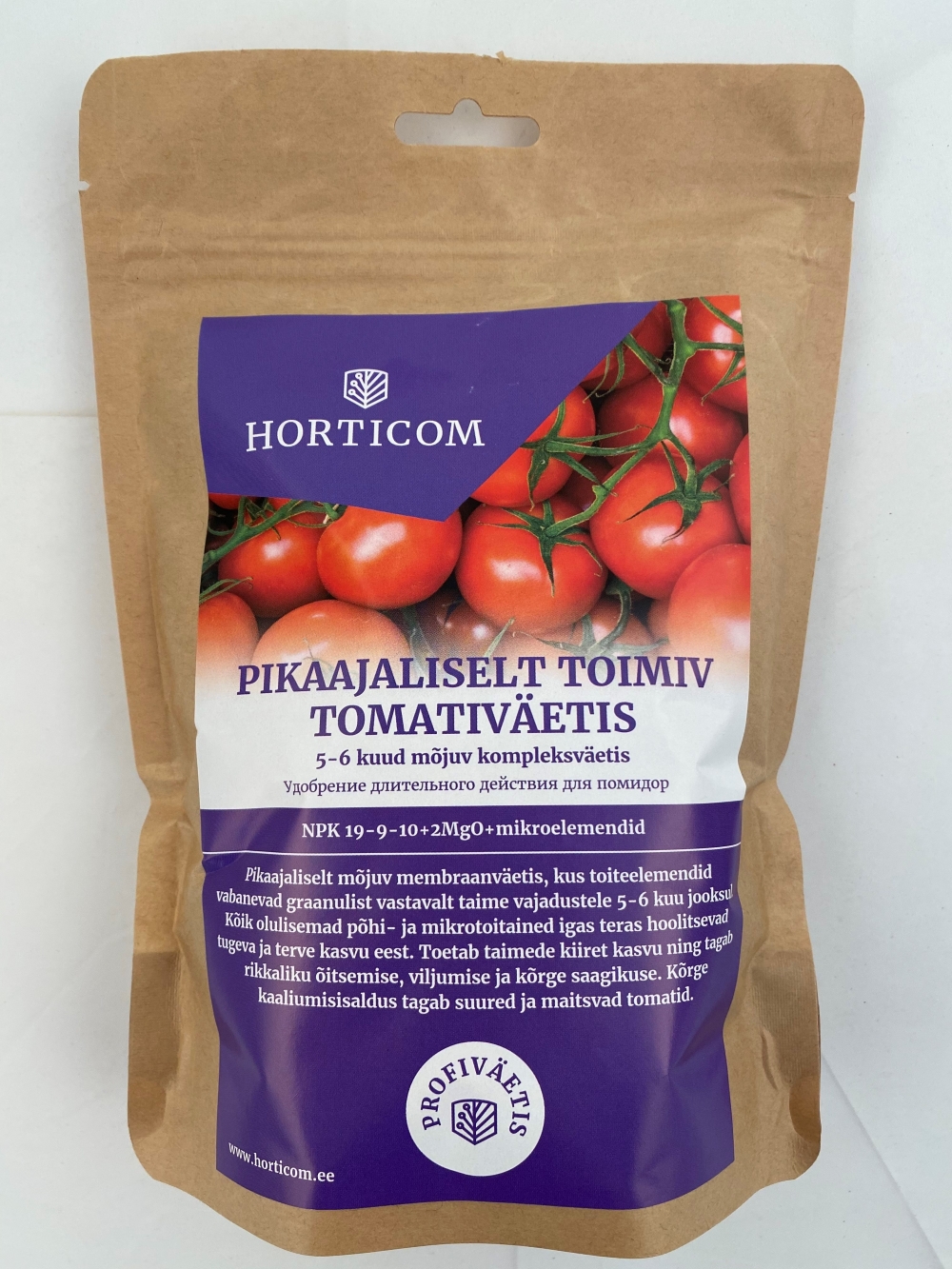 Pikaajaliselt toimiv tomativäetis, mis on 5-6 kuud mõjuv kompleksväetis. NPK 19-9-10+2MgO+mikroelemendid. Pikaajaliselt mõjuv membraanväetis, kus toiteelemendid vabanevad graanulist vastavalt taime vajadustele 5-6 kuu jooksul. Kõik olulisemad põhi- ja mikrotoitained igas teras hoolitsevad tugeva ja terve kasvu eest. Toetab taimede kiiret kasvu ning tagab rikkaliku õitsemise, viljumise ja kõrge saagikuse. Kõrge kaaliumisisaldus tagab suured ja maitsvad tomatid.