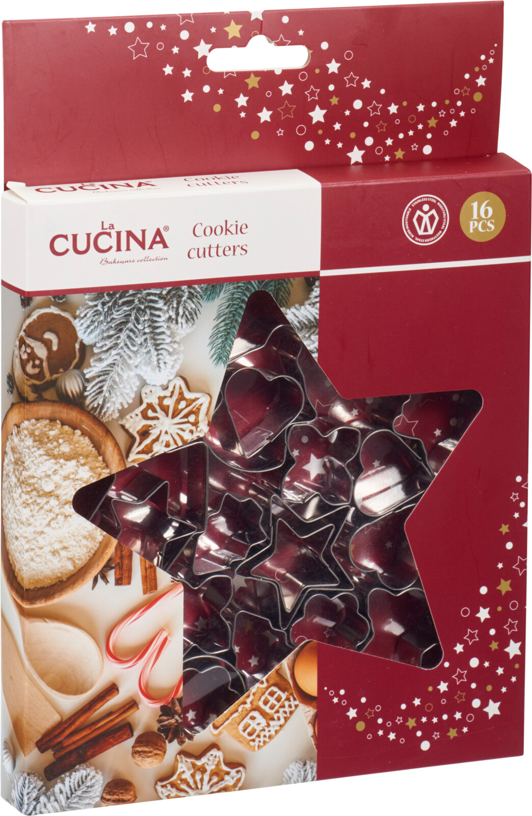 Komplektis on 16 erinevat metallist piparkoogivormi, millega saab küpsetada lõbusaid ja pidulikke küpsiseid. Vormide suurused ja kujundid varieeruvad, sobides ideaalselt jõuluteemaliseks küpsetamiseks kogu perele. Pakend sobib hästi ka kinkimiseks.