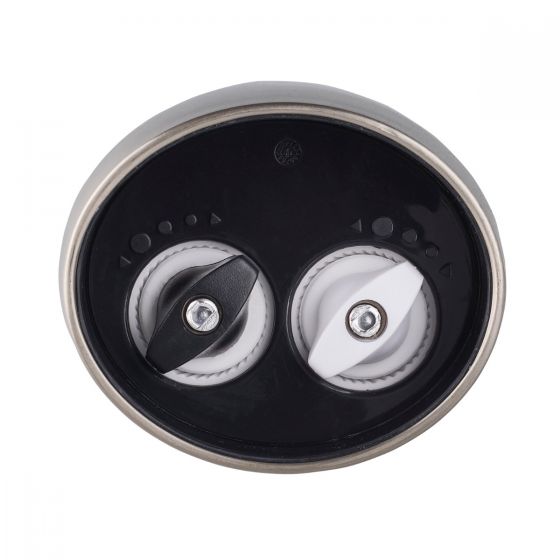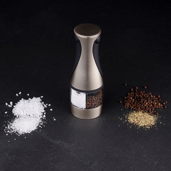 Kaks ühes veski on valmistatud harjatud kroomist. Ideaalne valik nii kööki kui ka söögilauale ning töötab ühe nupuvajutusega.