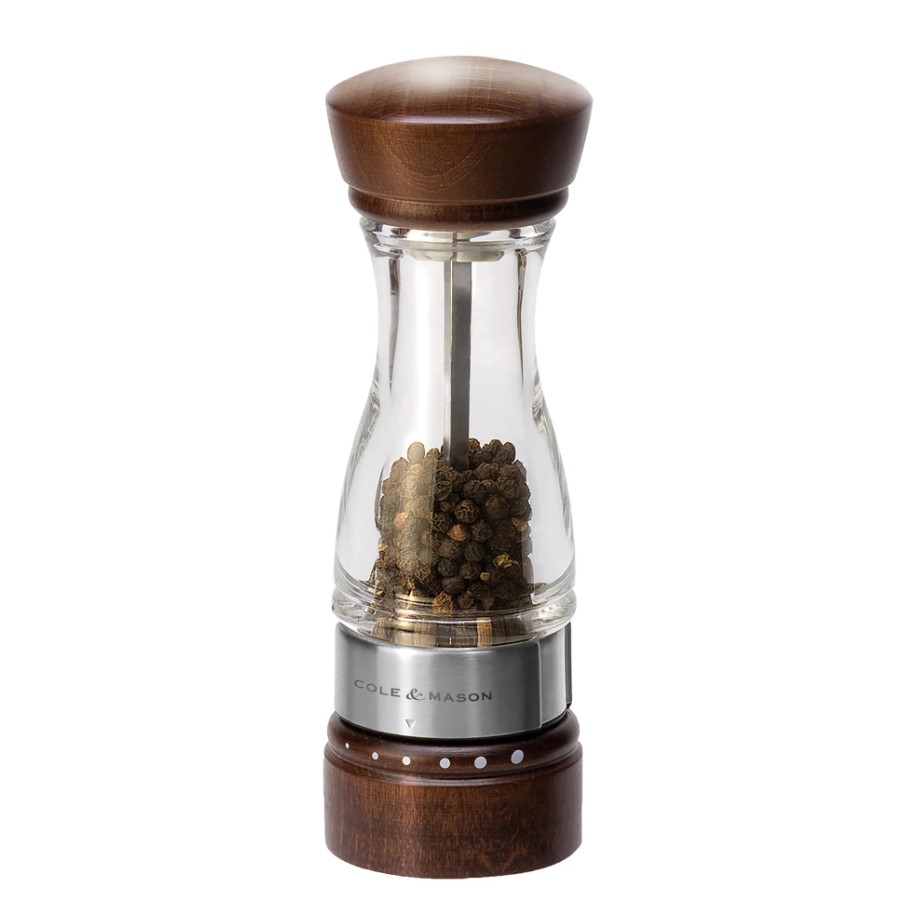 Veski on valmistatud kvaliteetsest pöögipuust, mis on peitsitud pähkli värvi. Tootel on 6 ettemääratud jahvatuse taset. Täitmiseks avage veski ülemine kork.