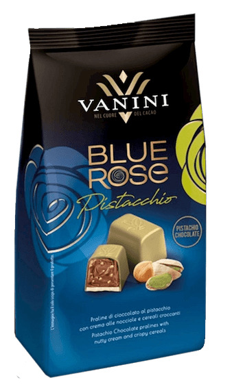 Vanini “Blue Rose” šokolaadimaiused on maitserikas kombinatsioon peenest valgest pistaatsiašokolaadist, kreemjast sarapuupähklikreemist ja krõbedatest teraviljatükkidest. Eksklusiivne koostis ja luksuslik maitseelamus teevad neist pralineedest tõelise gurmeevaliku igaks eriliseks hetkeks.