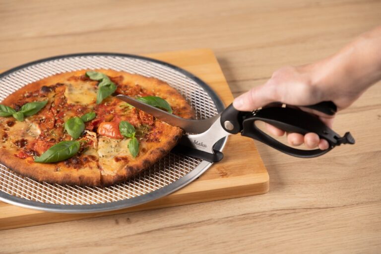 Praktilised Maku pitsakäärid, millega saab mugavalt lõigata pitsa sobivateks viiludeks. Alumisel teral on pehme kaitse, mis hoiab ära taldriku või serveerimisnõu kriimustamise.