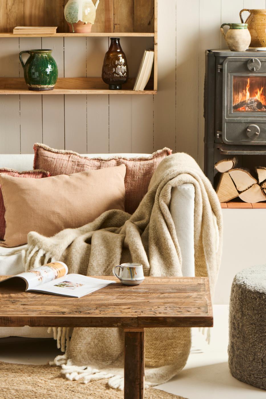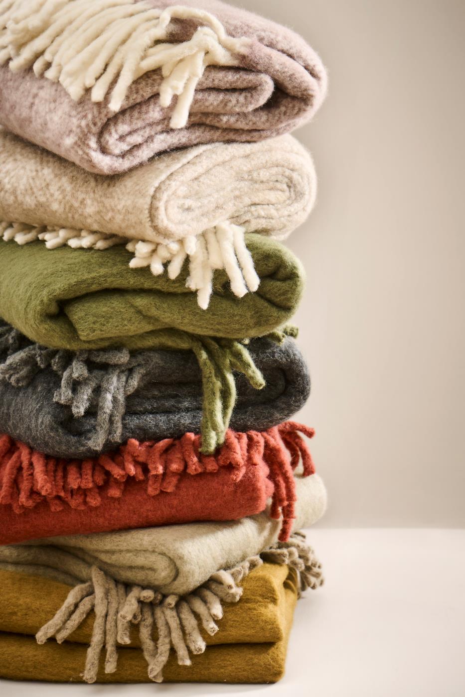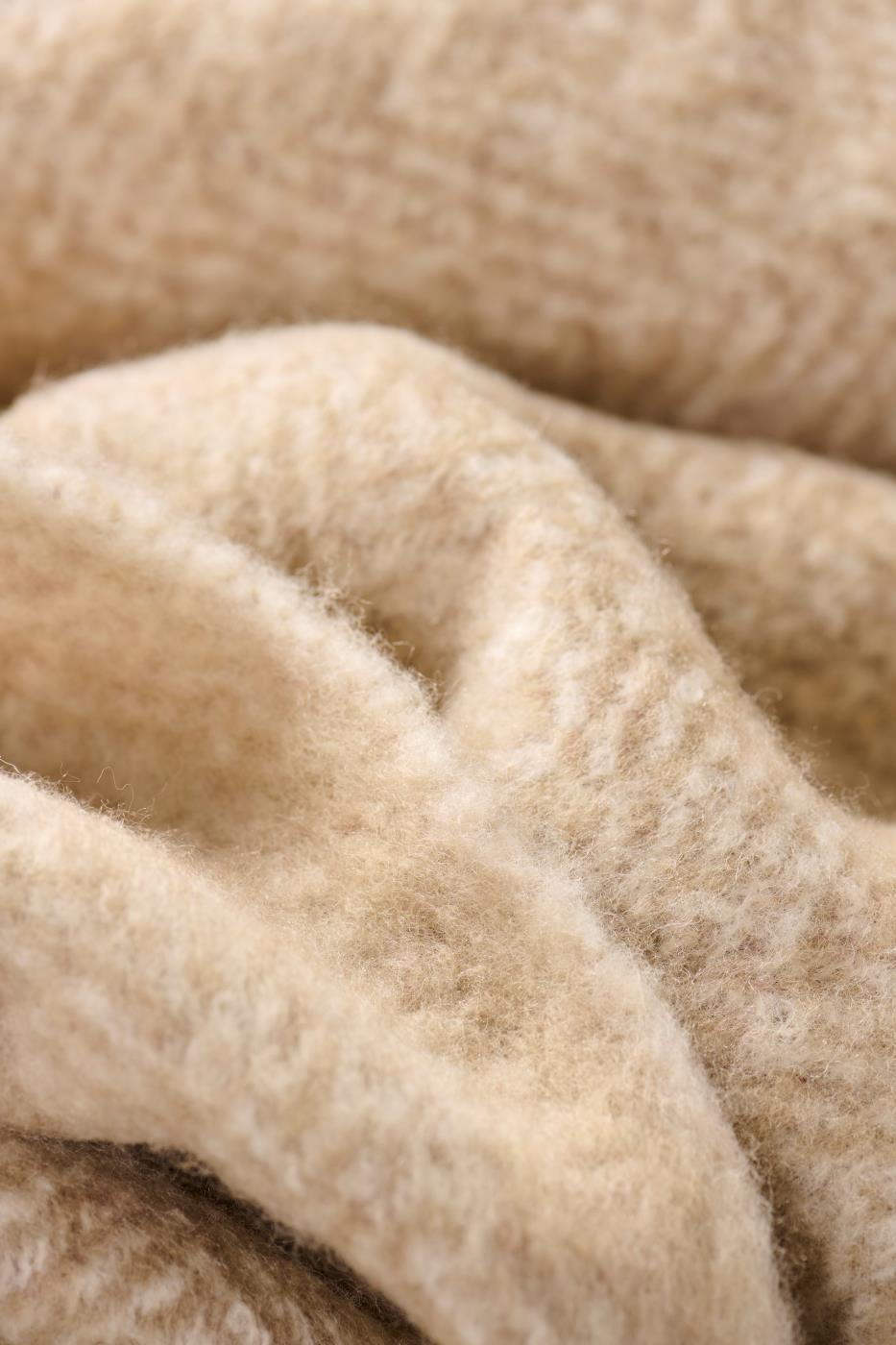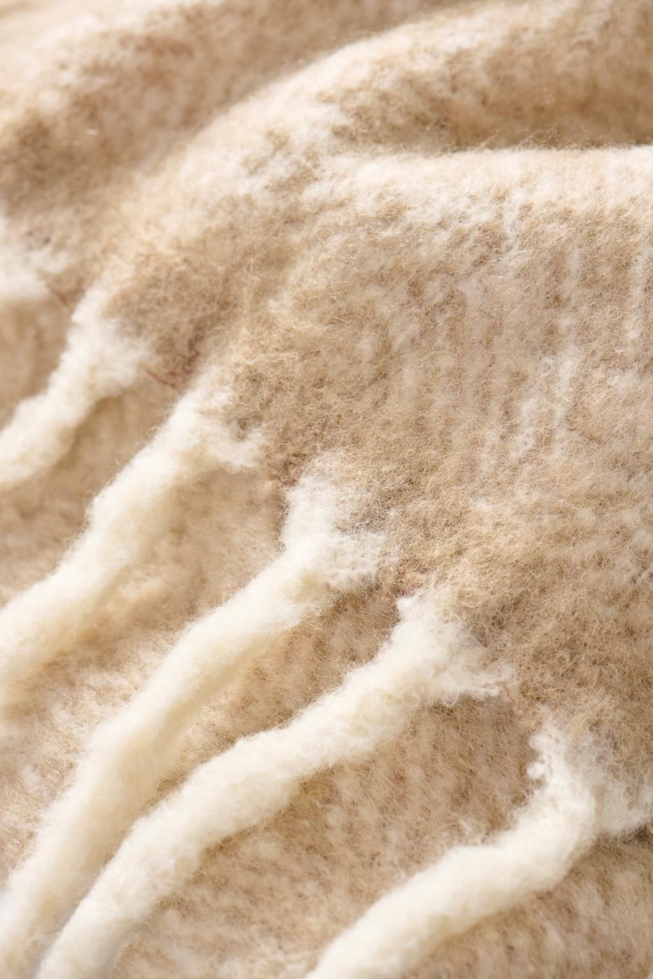 Villasegust valmistatud pehme ja kerge pleed. Kaunis beež toon koos dekoratiivsete narmastega annab pleedile hubase ja elegantse ilme.
