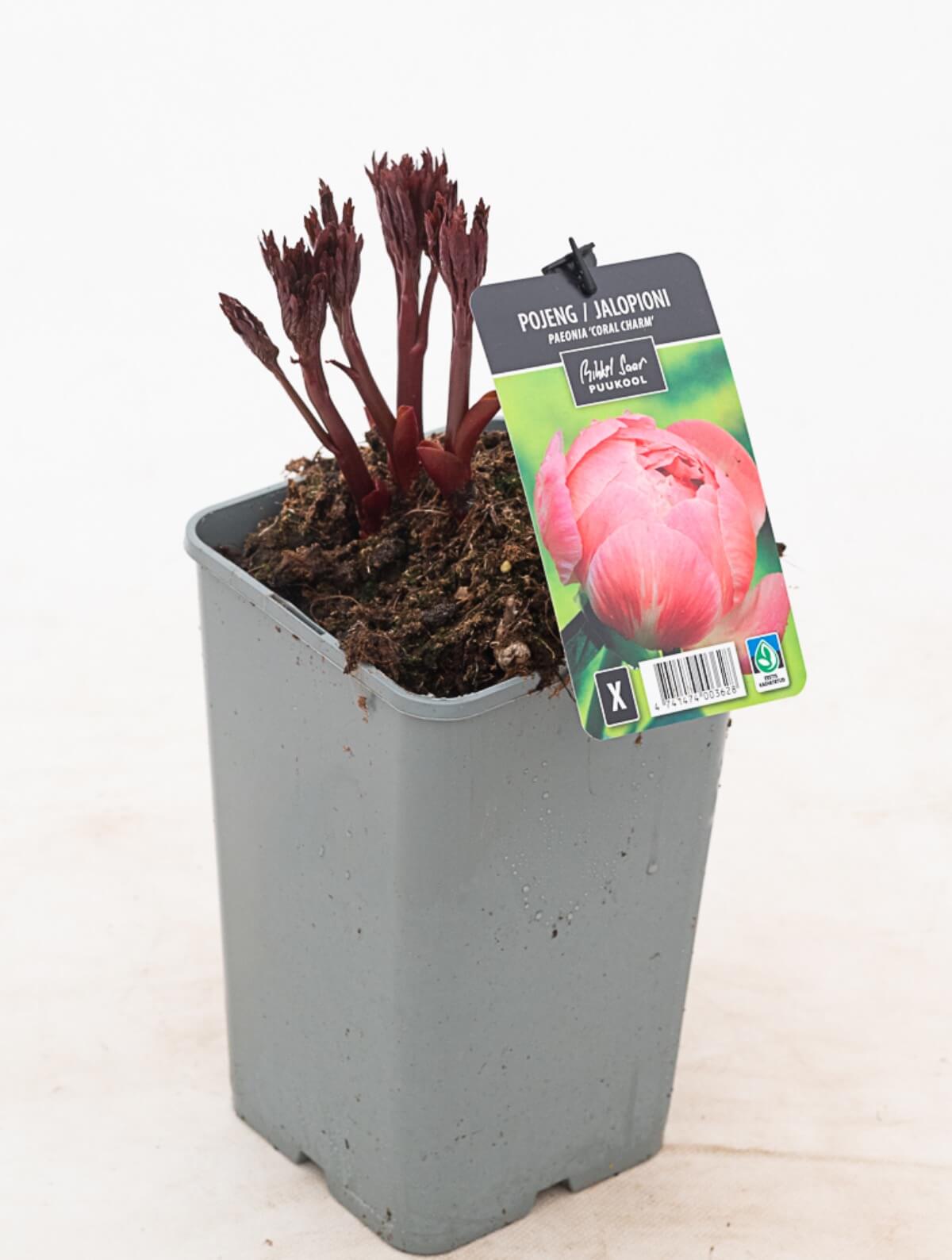 Pojeng ‘Coral Charm’ on silmapaistev ja auhinnatud varajane sort, mille suured pooltäidisõied avanevad erksalt korallroosadena ja tuhmuvad õitsemise käigus virsikukollaseks. Värvimuutus muudab iga põõsa elavaks ja pidevalt muutuvaks vaatepildiks. Väga hea lõikelillena. NB! See sort vajab toestamist harva.