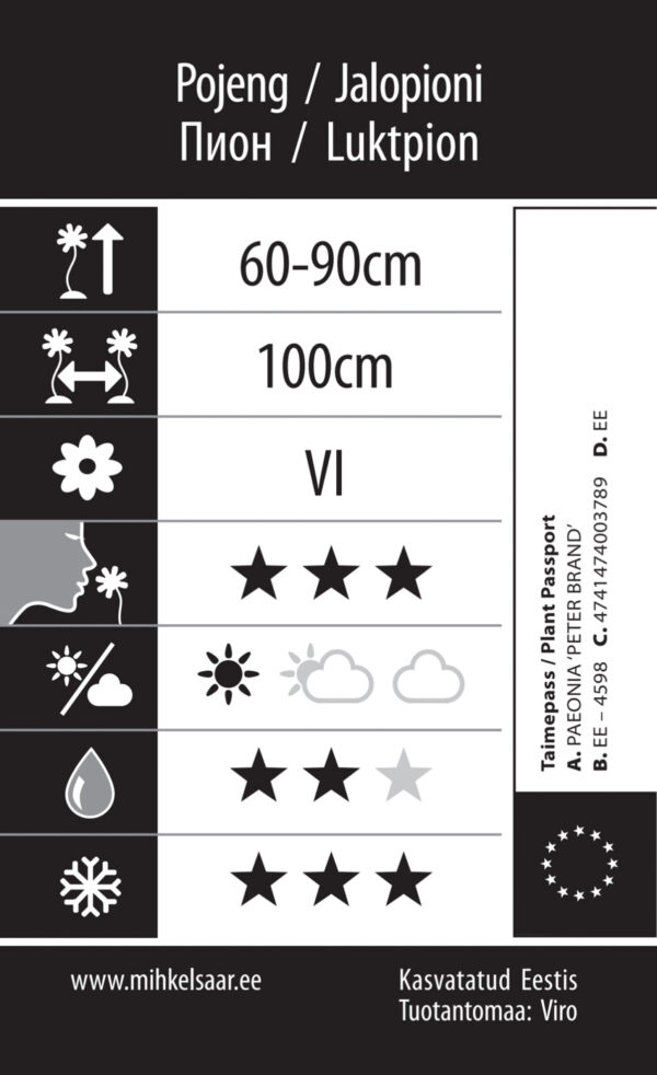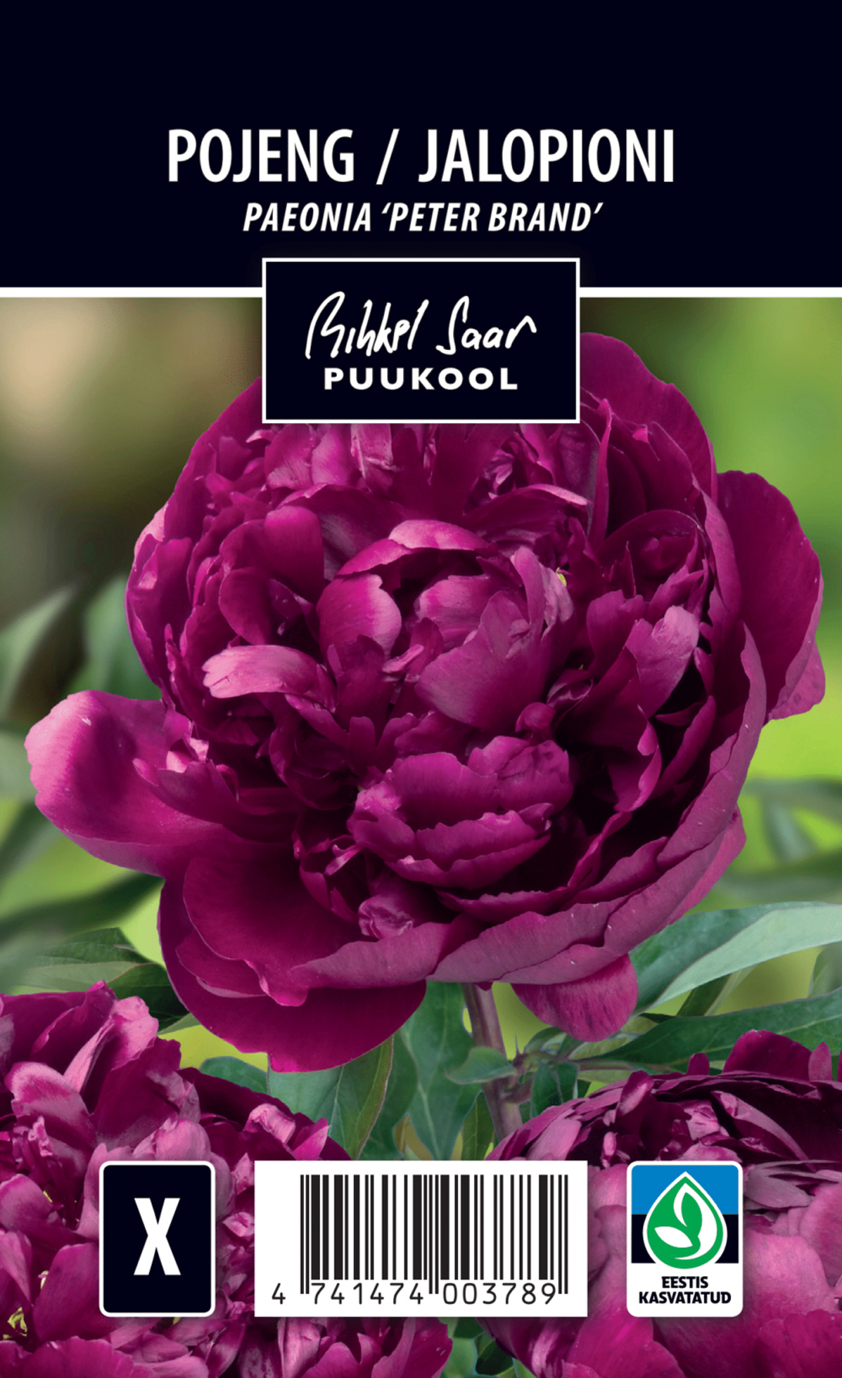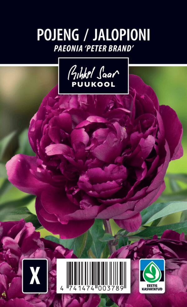 Pojeng ‘Peter Brand’ on sügavpunaste, peaaegu veinitooniga täidisõitega sort, mille värv muutub avanedes aina rikkalikumaks. Õied on suured, roosi meenutava kujuga ja kuldkollaste tolmuaktega, mis annab sordile eriti omanäolise ilme. Õied lõhnavad meeldivalt ja sobivad suurepäraselt ka lõikelilleks. NB! See sort ei vaja reeglina toestamist.