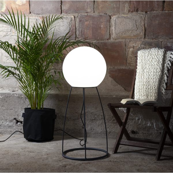 Mallorca põrandalamp ühendab modernse välimuse ja praktilise kasutatavuse, pakkudes hubast valgustust välistingimustes. Valge kuppel läbimõõduga 40 cm ja kõrgusega 95 cm sobib suurepäraselt terrassile, rõdule või aeda. E27 sokkel võimaldab valida valgusallika vastavalt soovitud valguslahendusele (max 23 W, läbimõõt alla 14 cm). Kuppel on kasutatav nii koos metalljalaga kui ka ilma. IP65 kaitseklass tagab vastupidavuse vihma ja tolmu eest.