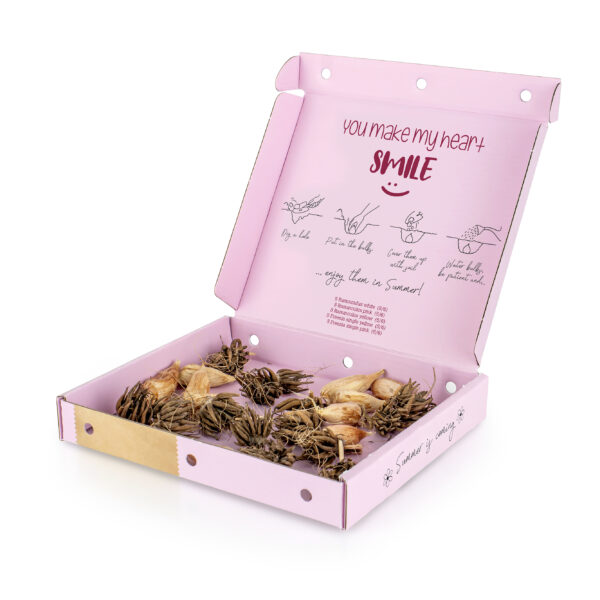 Komplekti kuulub: 5tk valge tulikas, 5tk roosa tulikas, 5tk kollane tulikas, 5tk kollane freesia, 5tk roosa freesia.