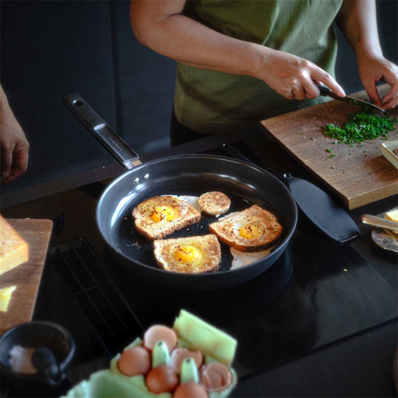 Fiskars Hard Face 30 cm praepann on loodud intensiivseks kasutamiseks ja kõrgel kuumusel küpsetamiseks. Suurem läbimõõt teeb selle sobivaks suuremate portsjonite valmistamiseks, samas kui paks alumiiniumist korpus tagab kiire ja ühtlase kuumenemise. Plastivaba keraamiline Ceratec™ Superior kate loob mittenakkuva pinna, mis võimaldab toitu kergesti pöörata ja annab roogadele kauni pruunistuse.
