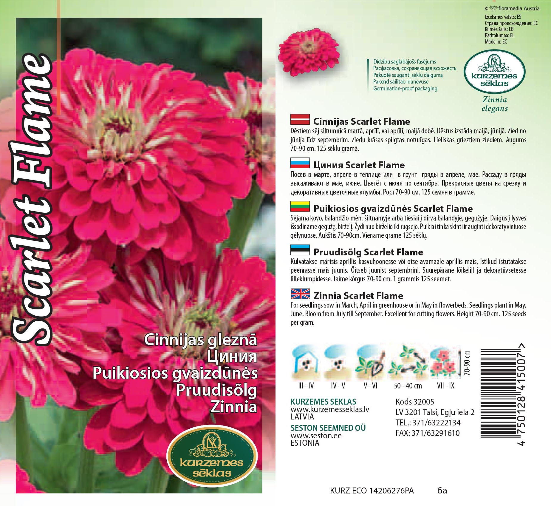 Zinnia elegans Tootja: Kurzemes seklas Tootekood: K063581