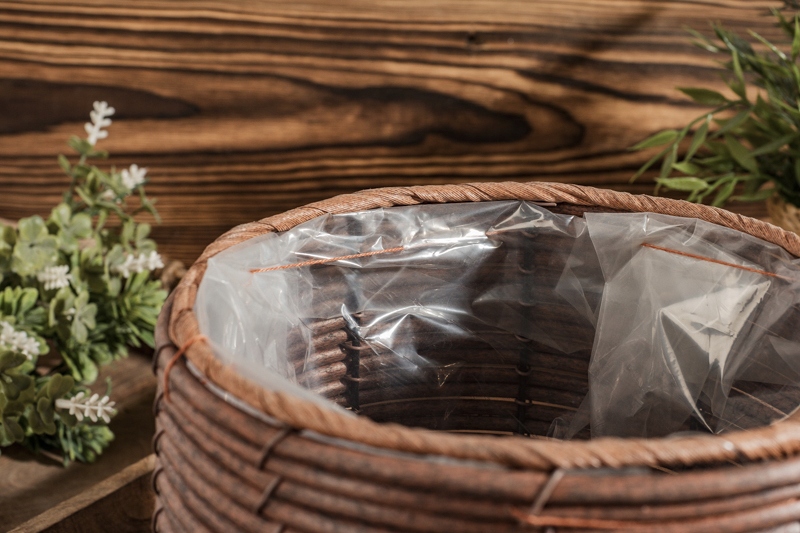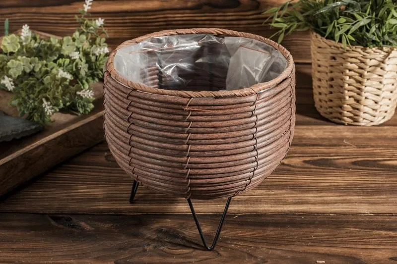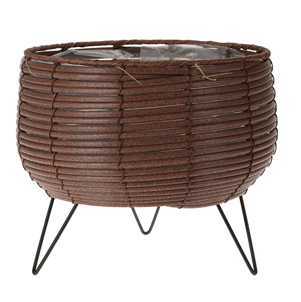 Stiilne ja praktiline punutud korv, mis on valmistatud vastupidavast tehnorotangist ning toetub stabiilsetele metalljalgadele. Sisemine kilevooder kaitseb niiskuse eest, muutes selle ideaalseks lillepotiks. Sobib suurepäraselt kasutamiseks nii toas, aias kui ka terrassil, lisades ruumile naturaalsust ja elegantsi.