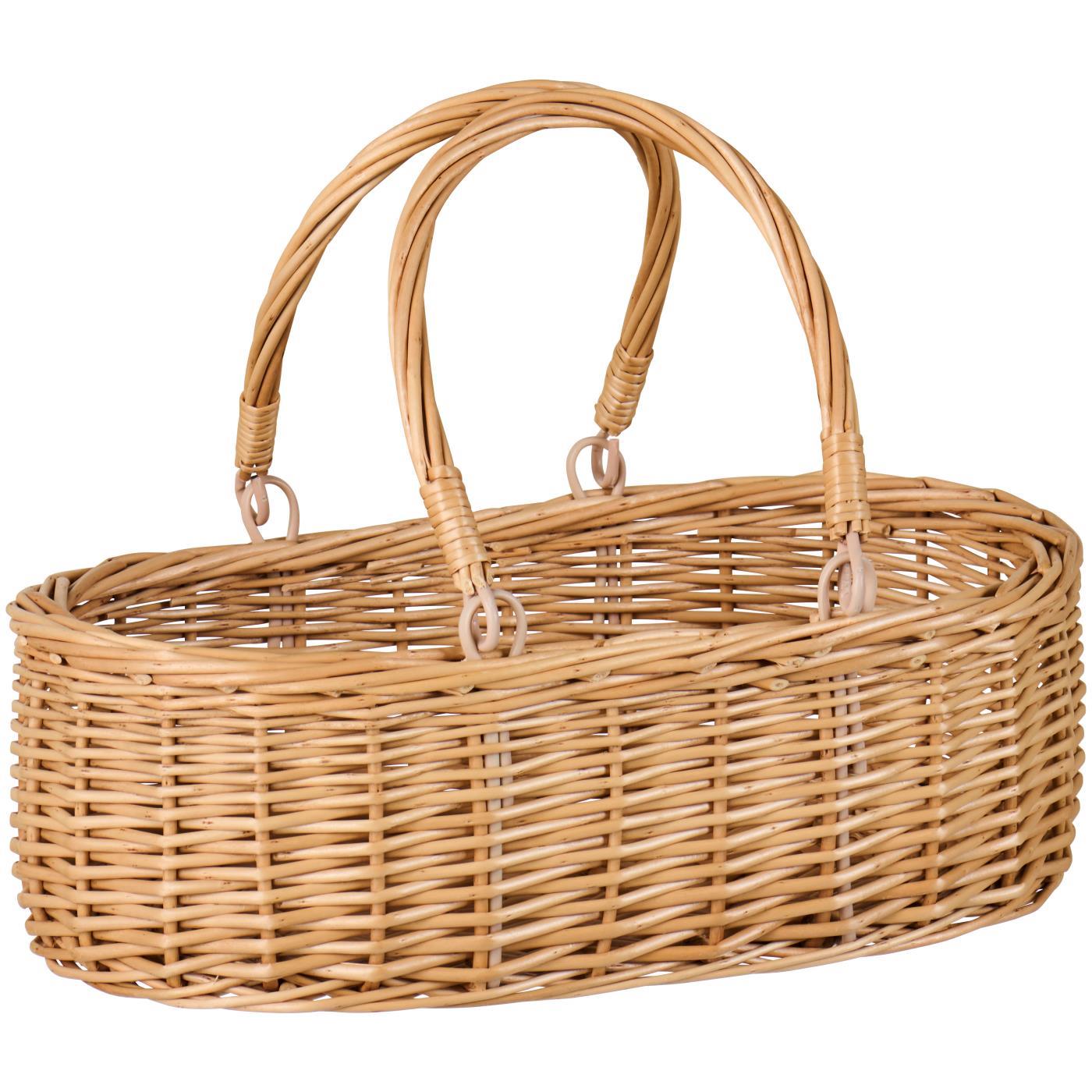 Käsitsi punutud ovaalne korv on tugev ja praktiline abivahend nii kodus kui aias. Täispajust valmistatud korv on vastupidava konstruktsiooniga ning sobib igapäevaseks kasutamiseks. Kaht liigutatavat sanga tugevdavad metallist kinnitused, mis muudavad korvi kandmise mugavaks ja turvaliseks. Naturaalne välimus lisab ruumile soojust ning dekoratiivset ilmet.