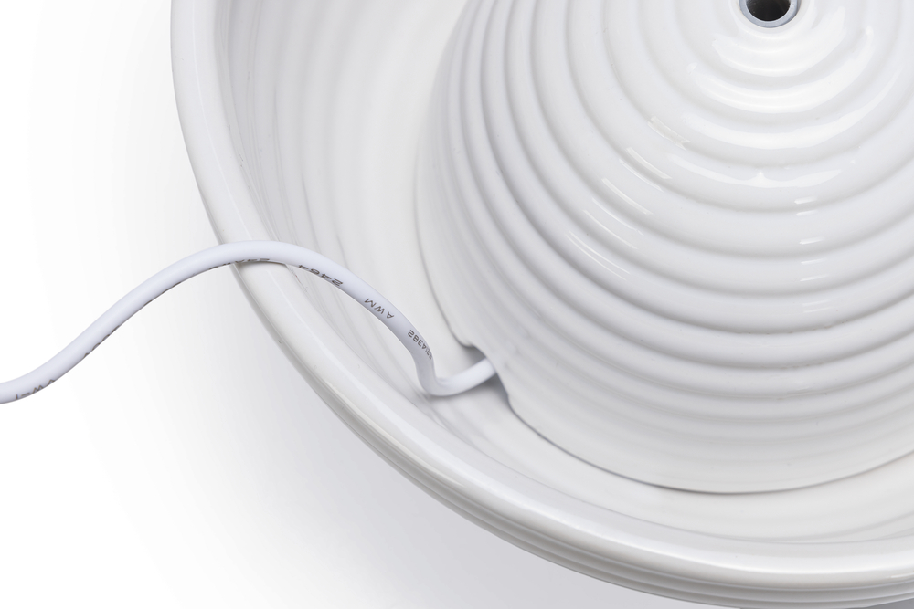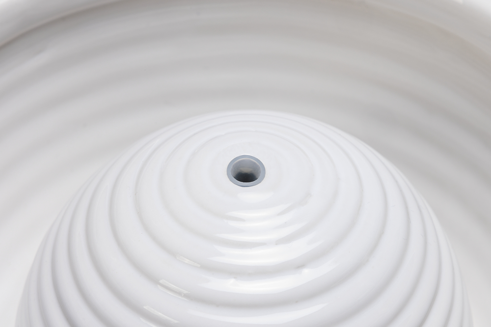 Materjal: keraamika Purskkaevu mahub 1,5L vett Mõõdud: 21x21x9cm Värvus: valge