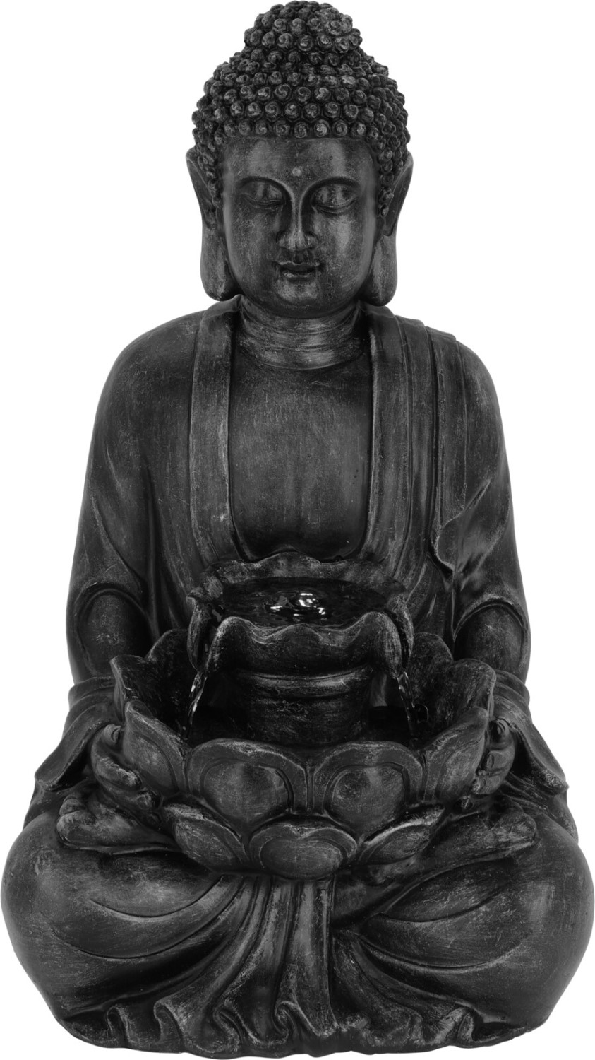 LED-valgustusega Buddha purskkaev muudab aia, terrassi või sisehoovi tõeliseks rahuoaasiks, ühendades voolava vee helid ja sooja valguse. Musta värvi väärikas kuju on valmistatud ilmastikukindlast polüresiinist, mis talub hästi välitingimusi ning püsib esinduslikuna pikka aega. Nelja integreeritud LED-tulega valgustatud veevool loob õdusa meeleolu ja muudab purskkaevu aia fookuspunktiks ka hämaratel õhtutundidel.