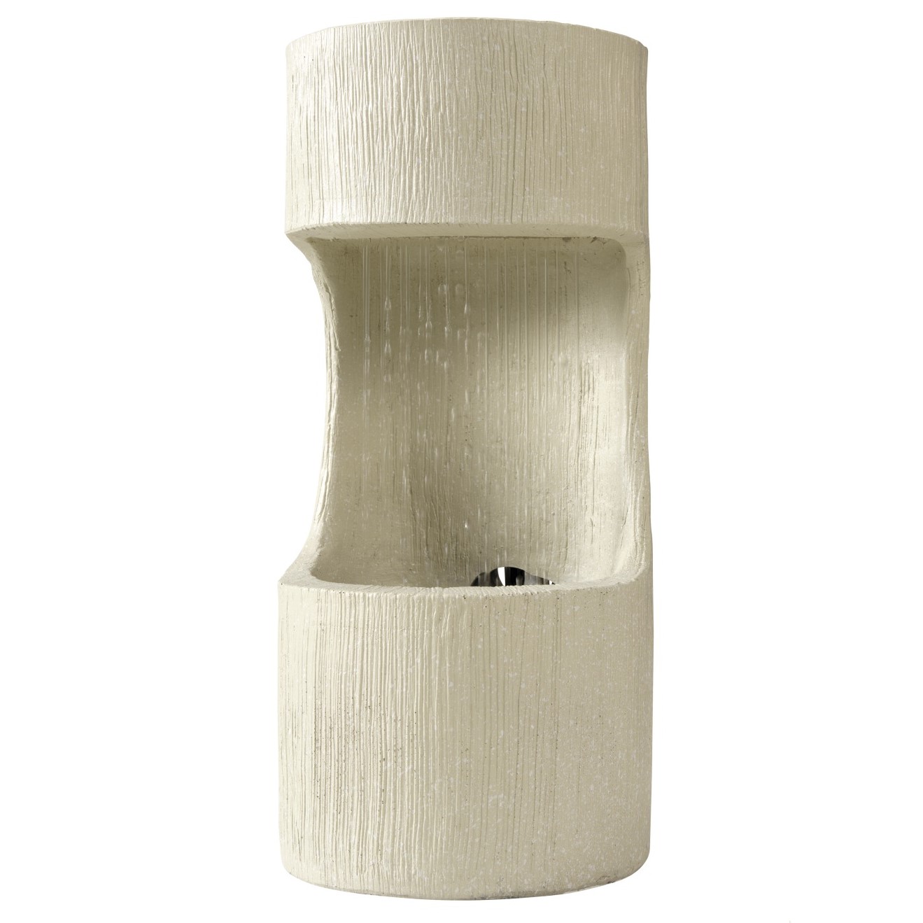 Lumineo beež silindrikujuline purskkaev toob aeda, terrassile või siseruumi rahuliku vee liikumise ja dekoratiivse detaili. Silindri keskosas asuv avatud element suunab vee mööda pinda alla, tekitades rahustava ja voolava veemängu.