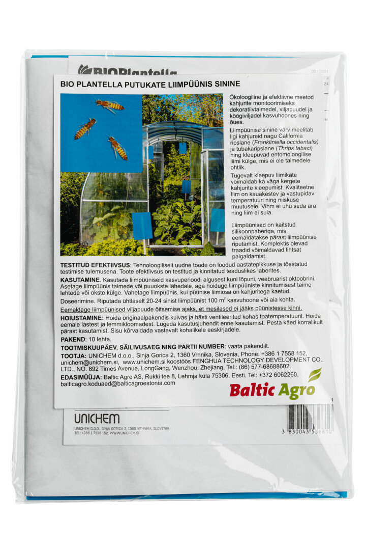 Putukate liimipüünis on tõhus ja keskkonnasõbralik lahendus kahjurite monitoorimiseks dekoratiivtaimedel, viljapuudel ja köögiviljadel nii kasvuhoones kui õues. Sinine liimpüünis meelitab ligi ripslasekahjureid, nagu California ripslane (Frankliniella occidentalis) ja tubakaripslane (Thrips tabaci), kes jäävad kinni spetsiaalsele entomoloogilise liimiga kaetud pinnale. Liim on taimedele ohutu ja tagab ka kergete kahjurite tõhusa kinnitumise.