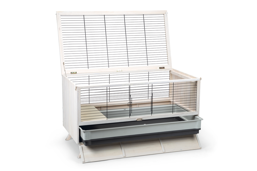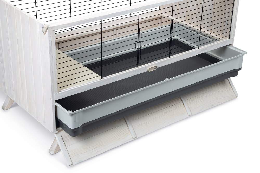 Beeztees Alby on stiilne ja praktiline puidust küüliku puur, mis sobib ideaalselt siseruumides kasutamiseks. Valge viimistlus ja puhas disain muudavad puuri kauniks sisustuselemendiks, pakkudes samal ajal küülikule turvalist ja mugavat elukeskkonda. Puur on valmistatud vastupidavast puidust ning varustatud metallist võredega, mis tagavad hea õhuringluse. Ülalt avatav kaas ja lukustatav esiluuk muudavad küüliku eest hoolitsemise lihtsaks ja mugavaks. Tänu väljatõmmatavale põhjasahtlile on puuri puhastamine kiire ja hügieeniline.